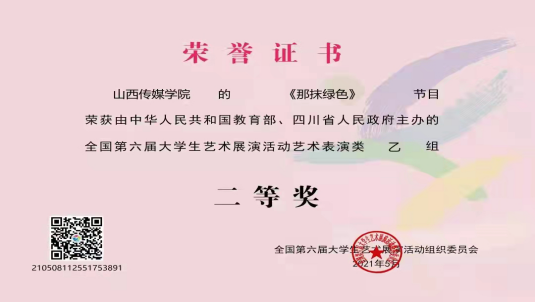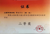 2021年由中华人民共和国教育部、四川省人民政府共同主办的全国第六届大学生艺术展演活动在成都举办。大学生艺术展演(大艺展)是由教育部主办的我国目前规格最高、规模最大、影响最广的大学生展示平台,每三年举办一次。经过专家组评审,我院师生在本次活动中荣获国家级奖项1项,山西省级奖项7项。