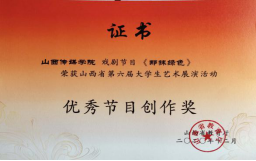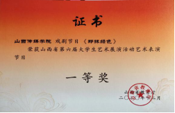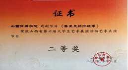 舞蹈《情深意长》荣获山西省第六届大学生艺术展演舞蹈节目一等奖;话剧《春风又绿江城岸》荣获山西省第六届大学生艺术展演戏剧节目二等奖;合唱《追寻》、《大红公鸡毛腿腿》荣获山西省第六届大学生艺术展演声乐节目二等奖;舞蹈《雩·祭》荣获山西省第六届大学生艺术展演活动舞蹈节目二等奖;《地方高校本科表演类实践教学模式探索与创新》荣获高校美育改革创新优秀案例类三等奖。