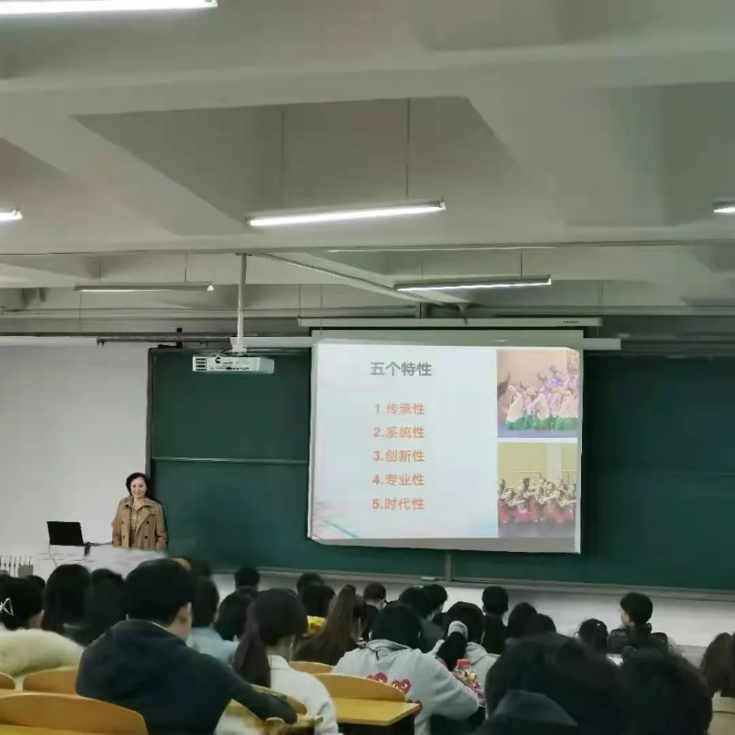 赵教授用幽默诙谐的语言、丰富的面部表情以及夸张的肢体动作,生动形象的向我们展示了山西民间舞蹈的体态、韵律,迎来了同学们阵阵掌声,她的个人魅力深深地折服了在场的每位同学。