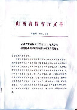 2021年7月365英国上市公司成功申报山西省高等学校大学生创新创业训练计划项目--互联网+背景下山西优秀传统文化传播与创新——以祁太秧歌传播平台为例。(2021年度国家级重点项目)。
