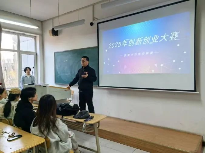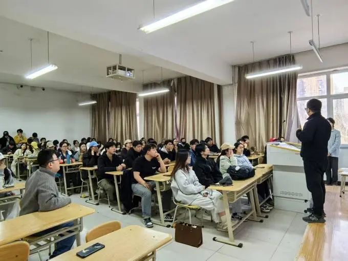王辛宇同学还为大家深入剖析了“挑战杯”与“互联网 +”赛事的异同,以“非遗活化项目”为案例,详细拆解了选题策划、团队搭建、路演展示的全流程。针对“项目同质化”“创新点模糊”等常见痛点,他结合自身经验,提出了切实可行的解决方案。表演班的同学们也积极地与王辛宇同学展开了关于参赛细节的提问互动。