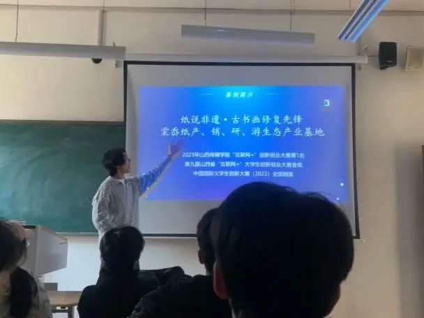 2025 年 3 月 31 日,22级表演班王辛宇同学以“纸说非遗·古书画修复先锋 棠岙纸产、销、研、游生态产业基地”为范例,为22、23、24年级表演班的同学们分享了自己多次参加大学生创新创业大赛的相关经验。