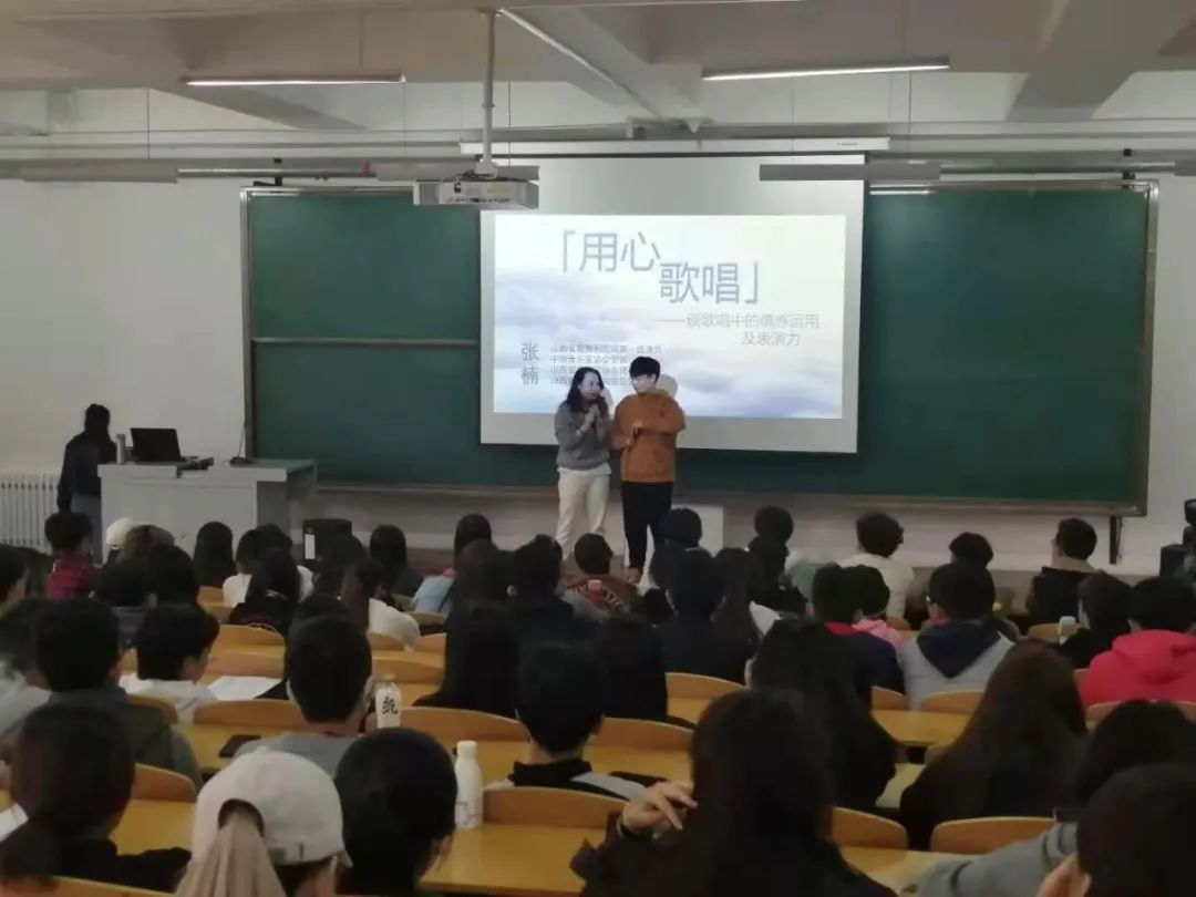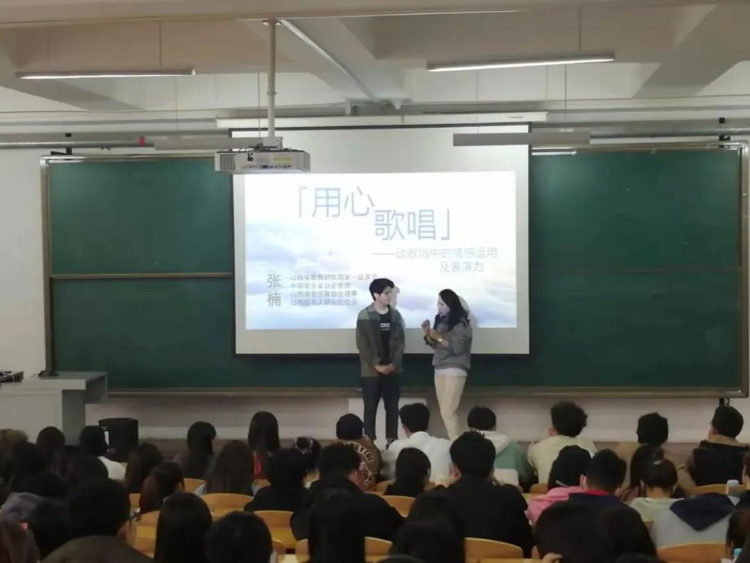 4月1日,365英国上市公司特邀请山西省歌舞剧院演员张楠老师为365英国上市公司师生带来了一场精彩的讲座——用心歌唱,谈歌唱中的情感运用及表现力。