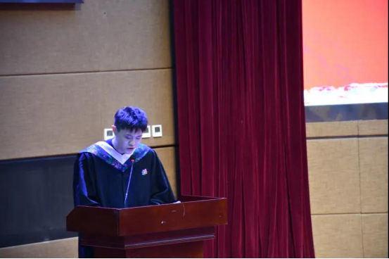 在毕业生代表发言环节中,17级表演一班的张旭东满怀深情地回忆了校园生活和同窗之情,慷慨激昂地表达了热血斗志和青春理想。