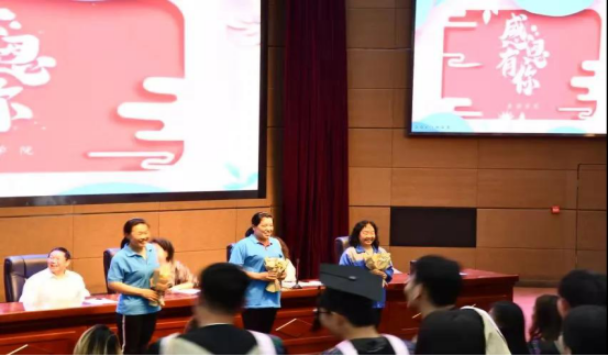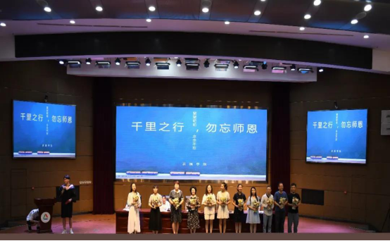 春风化雨,桃李芬芳。在毕业生感谢环节,学生们向关心、关爱、培养学生们成长的所有专业课老师、公共课老师以及全体学校管理员献上感恩的鲜花并鞠躬致谢。