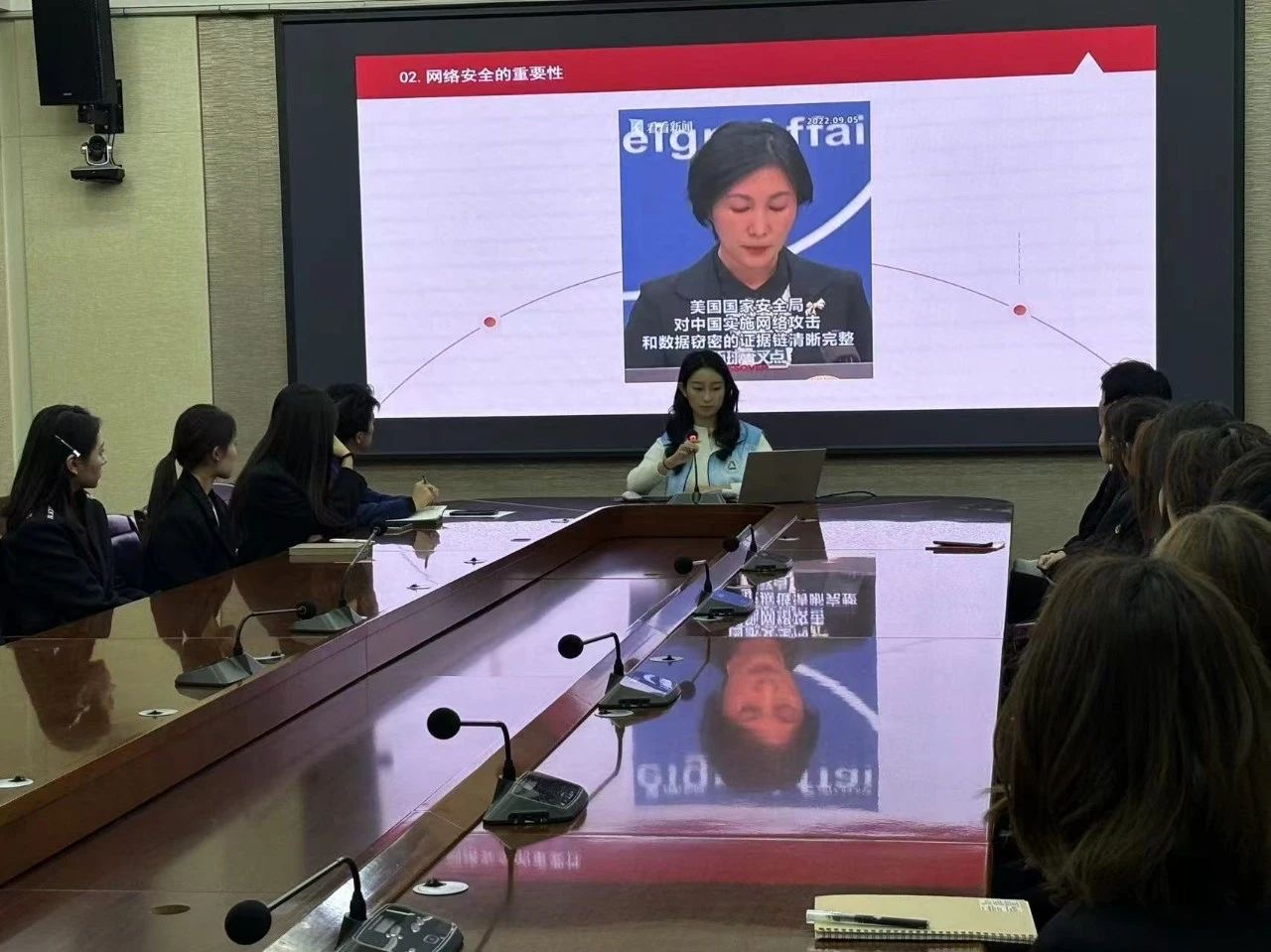 我校2024年“青马工程”学生宣讲团于10月25日走进365英国上市公司,宣传党的二十届三中全会精神。本次宣讲由校级青马工程宣讲团成员、新闻传播学院2022级学生胡誉千主持,进行了一场以“践行总体国家安全观,筑牢网络安全防线”为主题的宣讲活动。