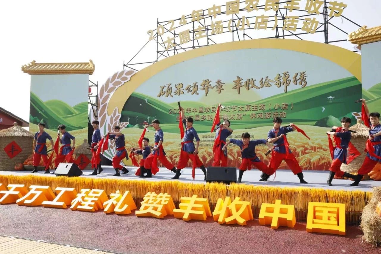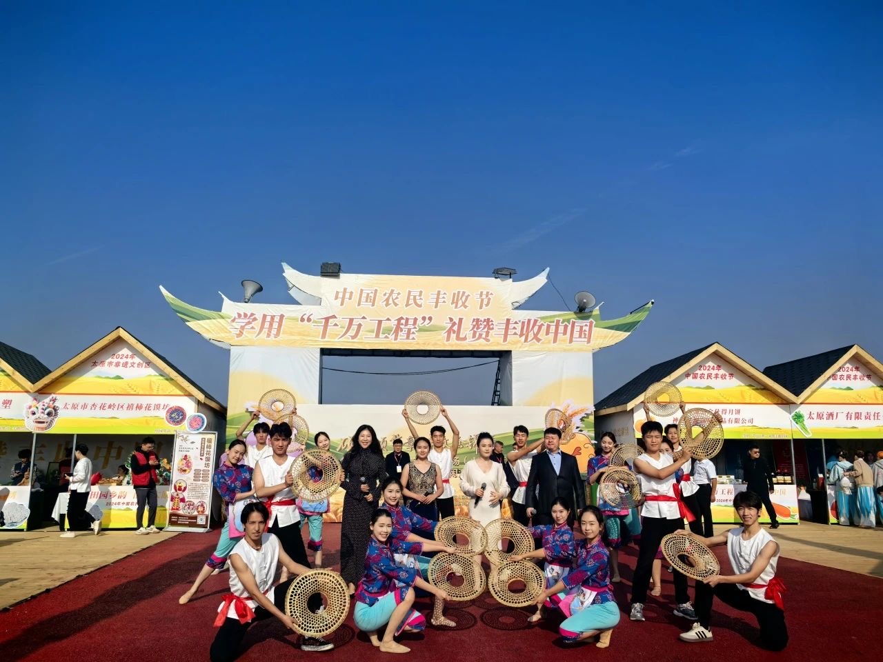 在2024年中国农民丰收节太原主场活动中,我院师生们带着对刘家堡村丰收的喜悦展开演出,充分展示了我院的青春风采和良好的精神风貌,也为刘家堡村文化建设增添了浓墨重彩的一笔。