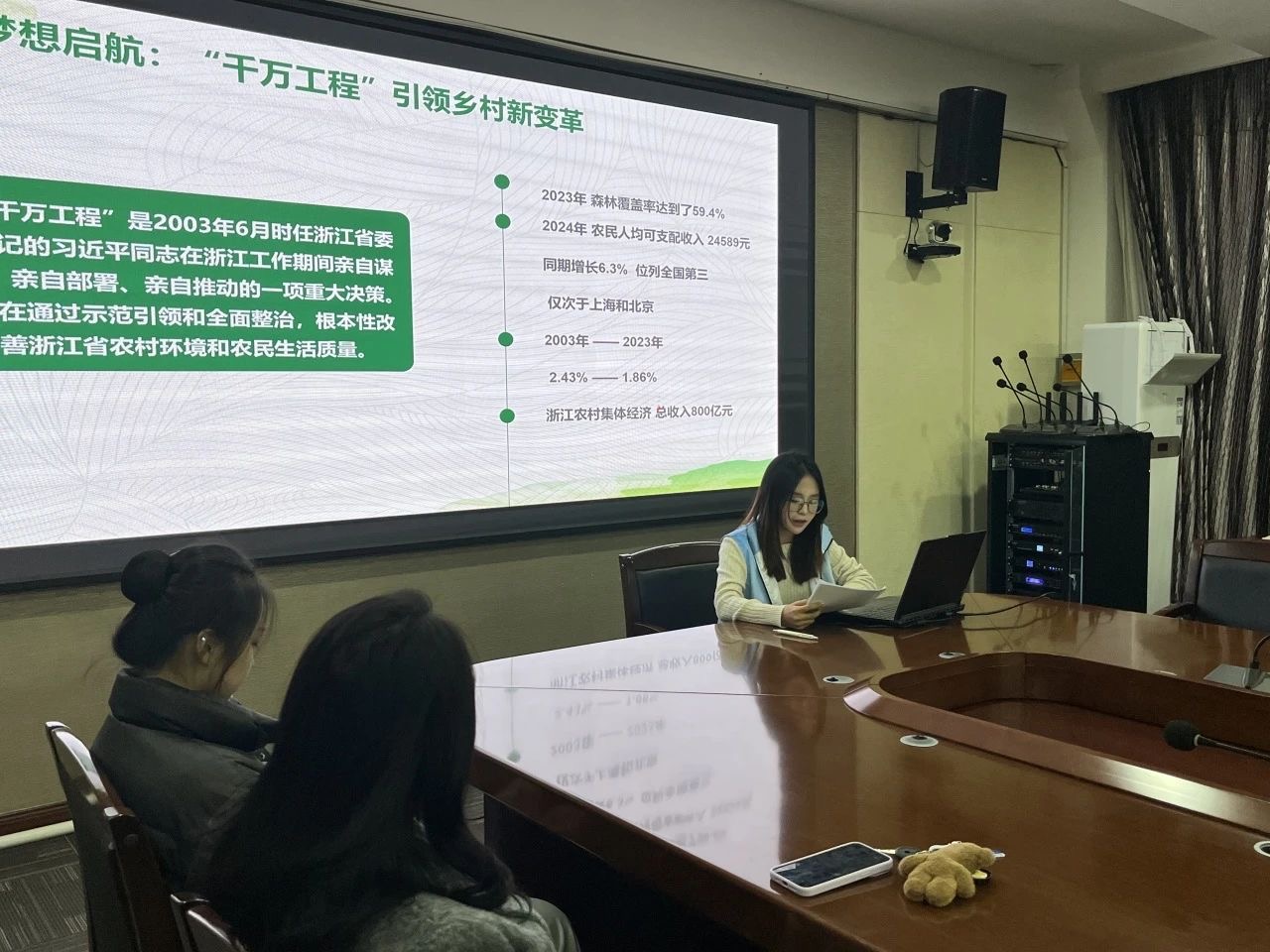 宣讲围绕“千万工程经验引领,促进乡村全面振兴”展开,深入介绍了“千万工程”的起源、实施及成效。该工程自2003年在浙江启动以来,通过示范引领和全面整治,显著改善了农村环境和农民生活质量,成为全国乡村振兴的典范。