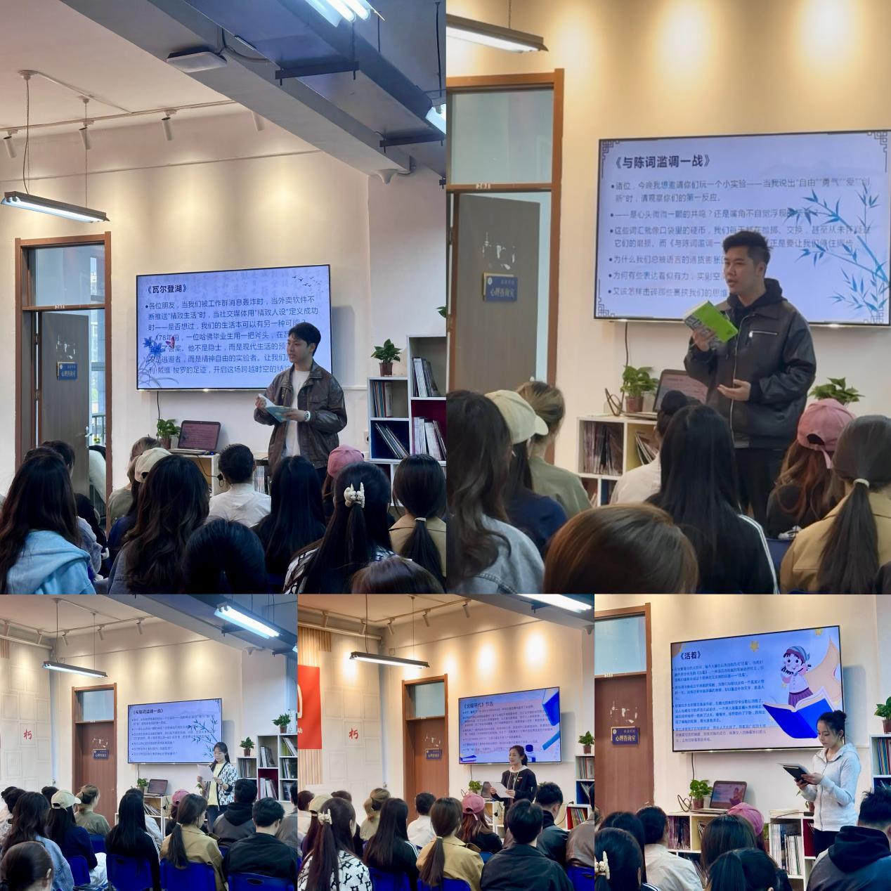 ‌声动人心朗诵会环节,同学们踊跃推荐了自己最喜欢的一本书,并阐述了推荐理由,随后深情演绎经典篇章,从《瓦尔登湖》的旷达到《活着》的哲思,声音与文字碰撞出火花,现场掌声不断‌趣味知识互动环节运用“飞花令”的形式展开,最终角逐出成绩最佳者与最佳朗读者并颁发了奖品。