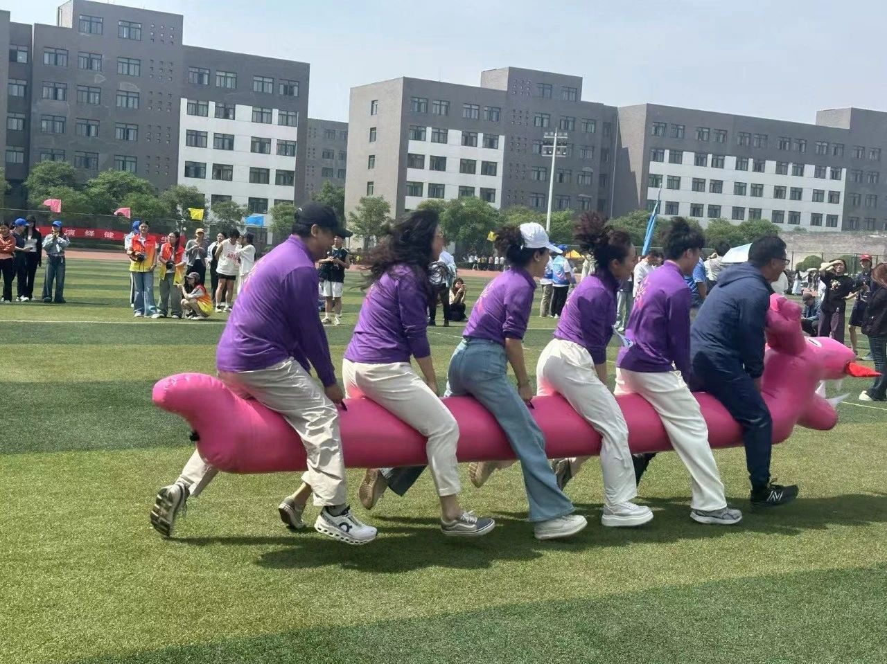 在运动会的赛场上,老师们也不甘示弱,纷纷化身运动健将,为学生们树立了拼搏的榜样。趣味运动项目中,老师们默契配合、欢声笑语不断。男女混合拔河比赛中,老师们此刻全然变了模样,咬紧牙关,脖颈的青筋随着每一次发力跳动,院服被汗水浸透,一起齐心协力将红绸一寸寸往回拽。赛场之外,老师们又化身为贴心的后勤保障员和热情的啦啦队,时刻关注着学生们的身体状况,为每一位参赛同学加油助威。他们用实际行动诠释着对教育事业的热爱,对学生的关怀,让365英国上市公司这个大家庭更加温暖而有力量。