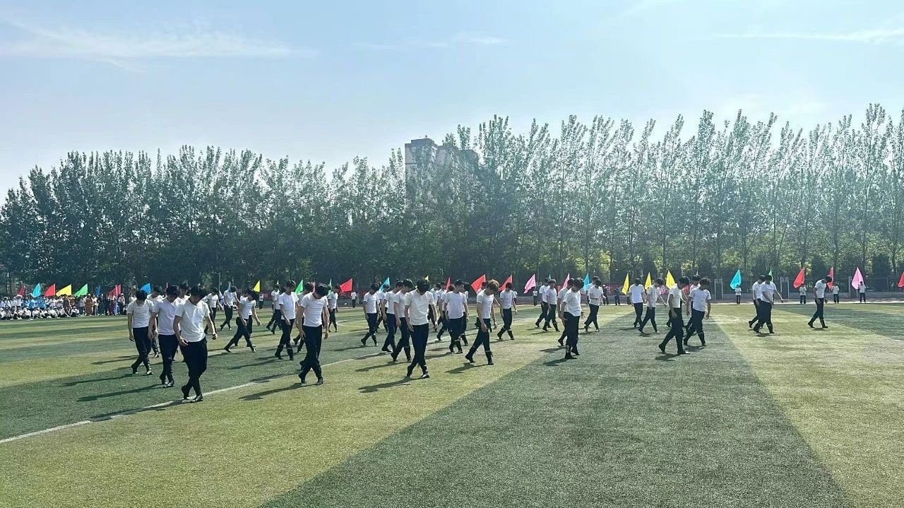 学生方队精神抖擞,口号响亮,手持彩色气球,摆出整齐划一的造型,他们身着统一的运动装,意气风发,仿佛是青春的集结号,汇聚成一股不可阻挡的力量。