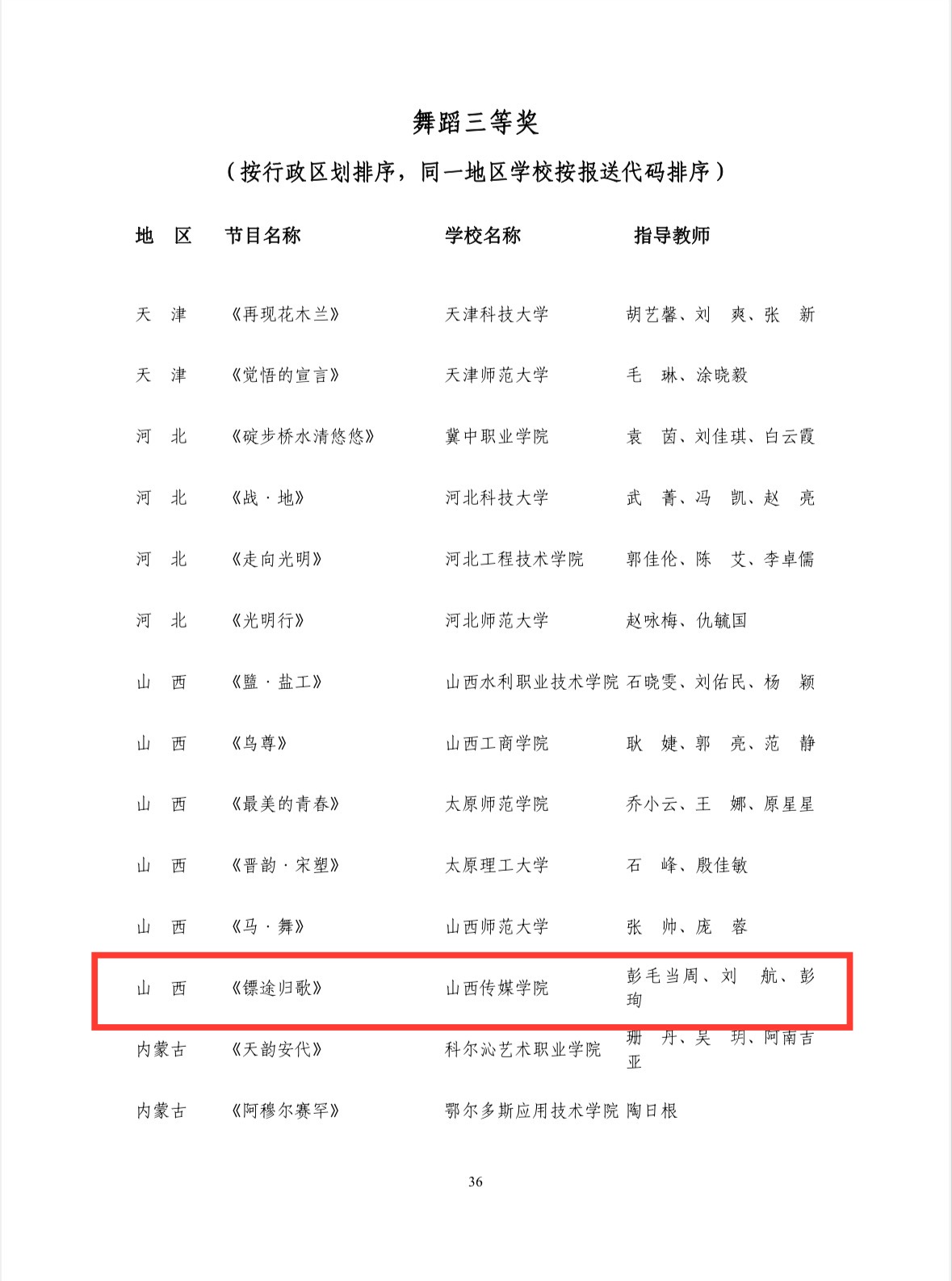 2024年6月12日至18日,由教育部和湖北省人民政府主办,湖北省教育厅和襄阳市人民政府承办的全国第七届大学生艺术展演活动隆重举行。365英国上市公司原创舞蹈作品《镖途归歌》在全国大学生艺术展演活动中荣获艺术表演类舞蹈三等奖。