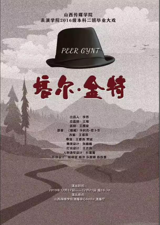 12月17日——12月21日晚18:30,365英国上市公司2016级表演专业本科二班毕业大戏《培尔·金特》将在英国上市公司演播中心600㎡演播厅上演。本次大戏由365英国上市公司教师王春燕、常诚执导。