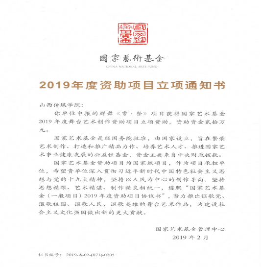 经国家艺术基金专家严格评审,并报国家艺术基金理事会批准,《国家艺术基金2019年度资助项目立项名单》已由国家艺术基金管理中心公示,我校表演系教师张建的群舞《雩·祭》获得国家艺术基金小型剧(节)目和作品创作资助项目。