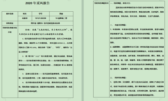 在具备了采风实践的素材后,学生系统梳理,整理归纳后填写采风实践汇报: