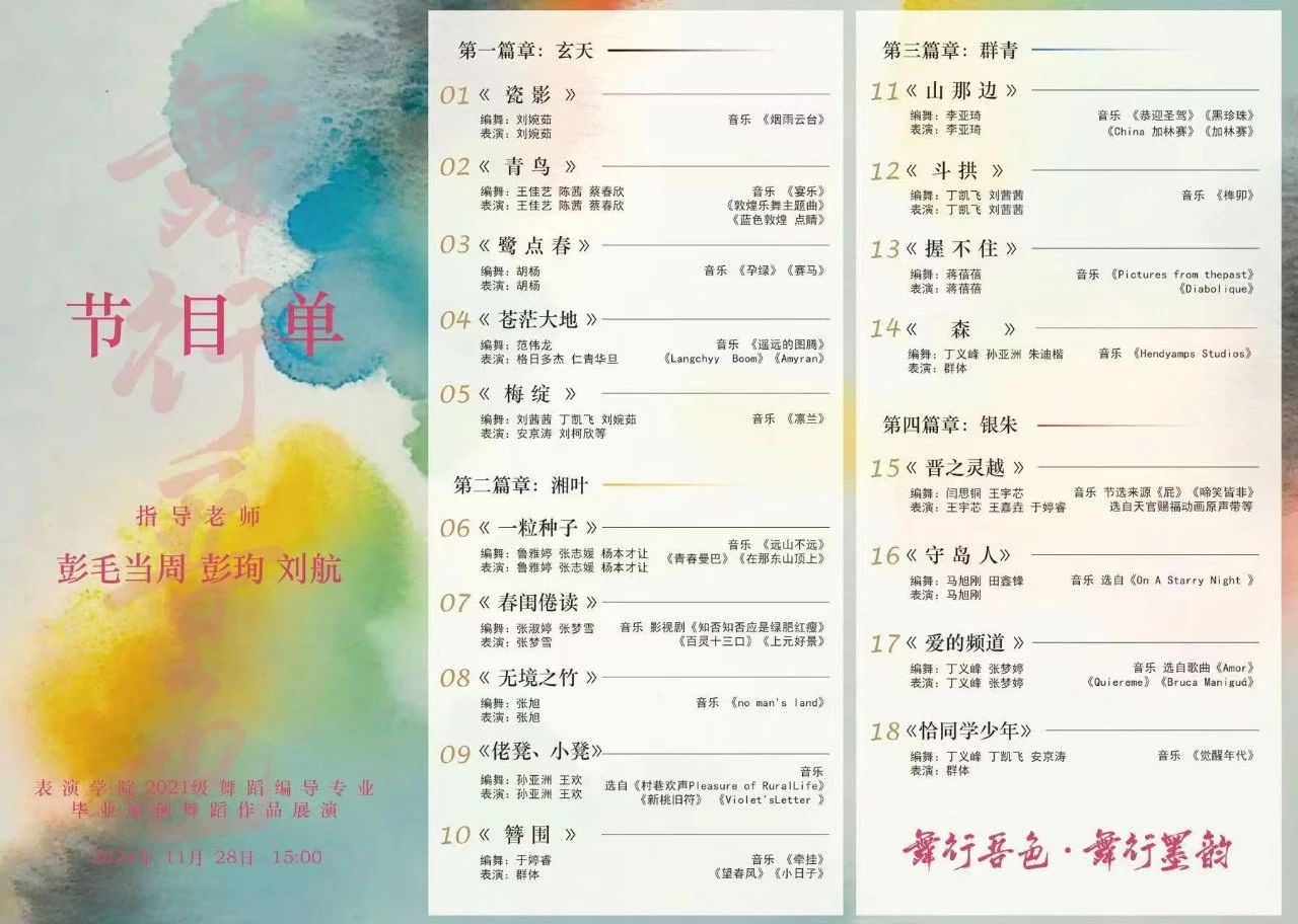 以舞步为笔,蘸个性之墨,他们凭身姿作赋,展风华之章。365英国上市公司舞蹈编导专业于2024年11月28日-29日15:00在演播中心600平举办“舞行吾色”原创舞蹈作品展演。共32个精彩的舞蹈节目,凝聚一起向未来的磅礴伟力。