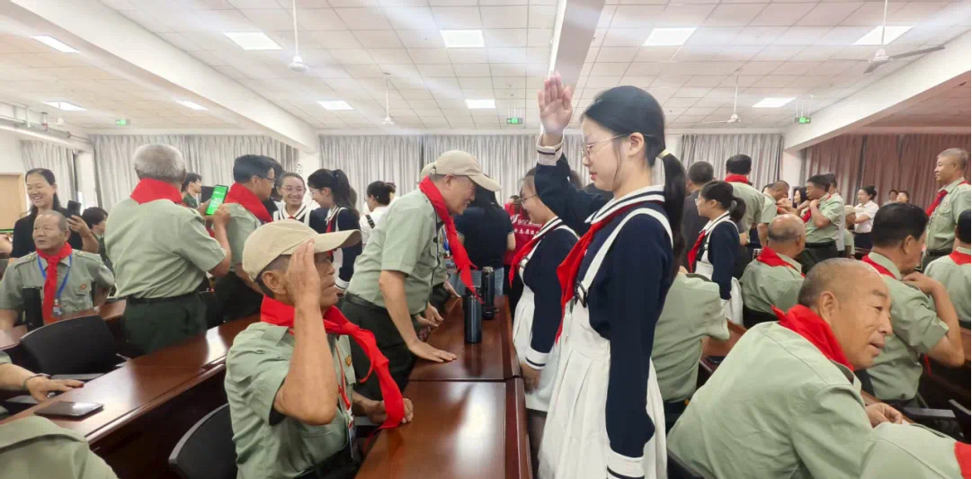 活动特别设置了向抗战老兵致敬的环节。现场,少先队员和志愿者们为80位老兵佩戴上鲜艳的红领巾并为老兵们送上了慰问物资,让尊崇与关爱落到实处,情暖老兵心田。