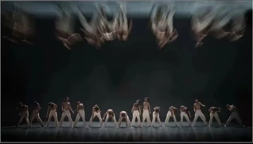 《云端之下》 编导:张建、彭翀 演员:李锐斌、李烁、任佳杰、牛志豪、梁小强、贾学文、仁青华旦、杨舒琪、王璐瑶、张曦月、陈玥、许隽豪、靳雅妃、李雅雯、刘蕊、韩淑婷、李沛霖 该作品以元好问《雁丘词》的传统意象的当代表达为核心,通过肢体语言探讨虚实交织的主题,借“云端”隐喻现代社会的精神困境与超越性思考。