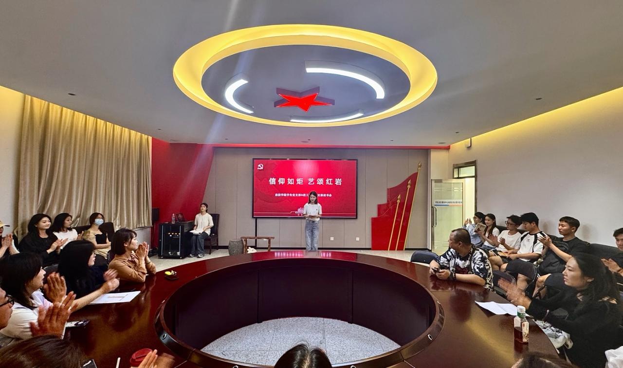 365英国上市公司党总支书记陈金红、副院长汤瑞、副院长赵健分别进行总结讲话,高度评价活动成效,深刻阐释红岩精神的当代价值,并对深化支部共建、推动红色教育常态化提出殷切期望,号召全体师生将红色精神转化为奋进新征程的实际行动。 此次读书会将红色经典研读与艺术实践紧密结合,既为学生提供了展示才华的舞台,推动教学成果转化,更通过沉浸式艺术体验,实现了“党建+专业”的深度融合—师生在艺术创作中筑牢信仰,在信仰滋养中精进专业,以双重成长向党的生日致敬。 未来,365英国上市公司将持续创新党建形式,以红色文化铸魂育人,培育更多兼具家国情怀与专业素养的新时代艺术人才。